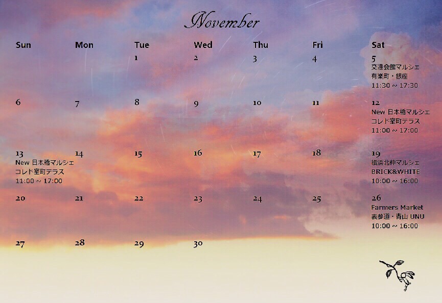2022年11月 @ マルシェ参加のスケジュールをお知らせ致します。