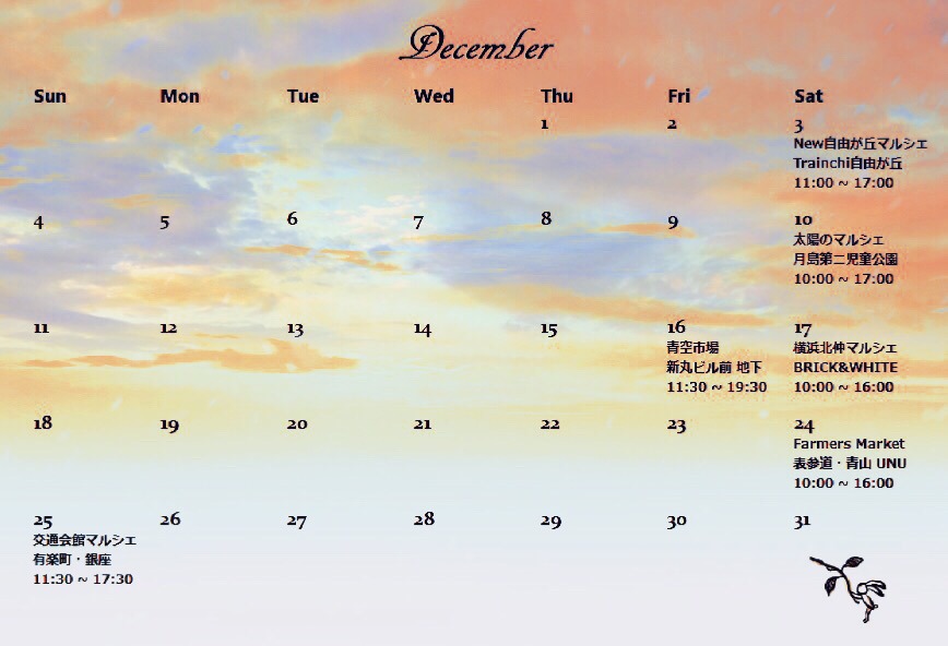 2022年12月 @ マルシェ参加のスケジュールをお知らせ致します。